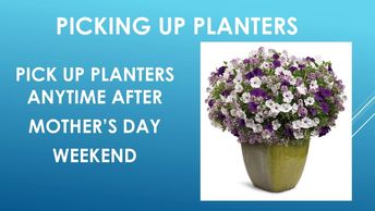 Pick up your completed planter anytime after Mother's Day weekend. For faster service, call ahead and arrange a date and time for pick-up. Curb side, no contact pick up will be available for Guest requesting it.